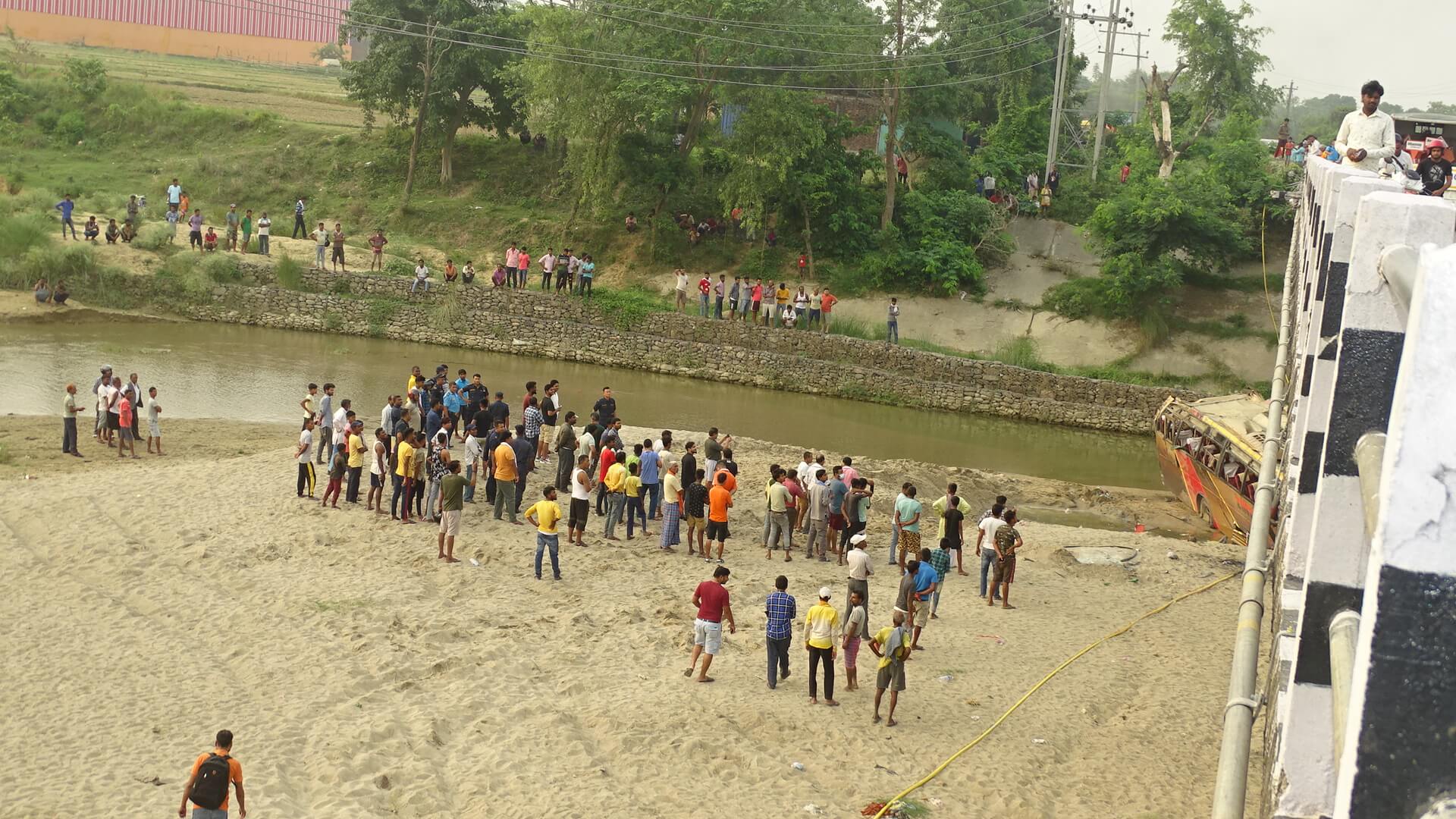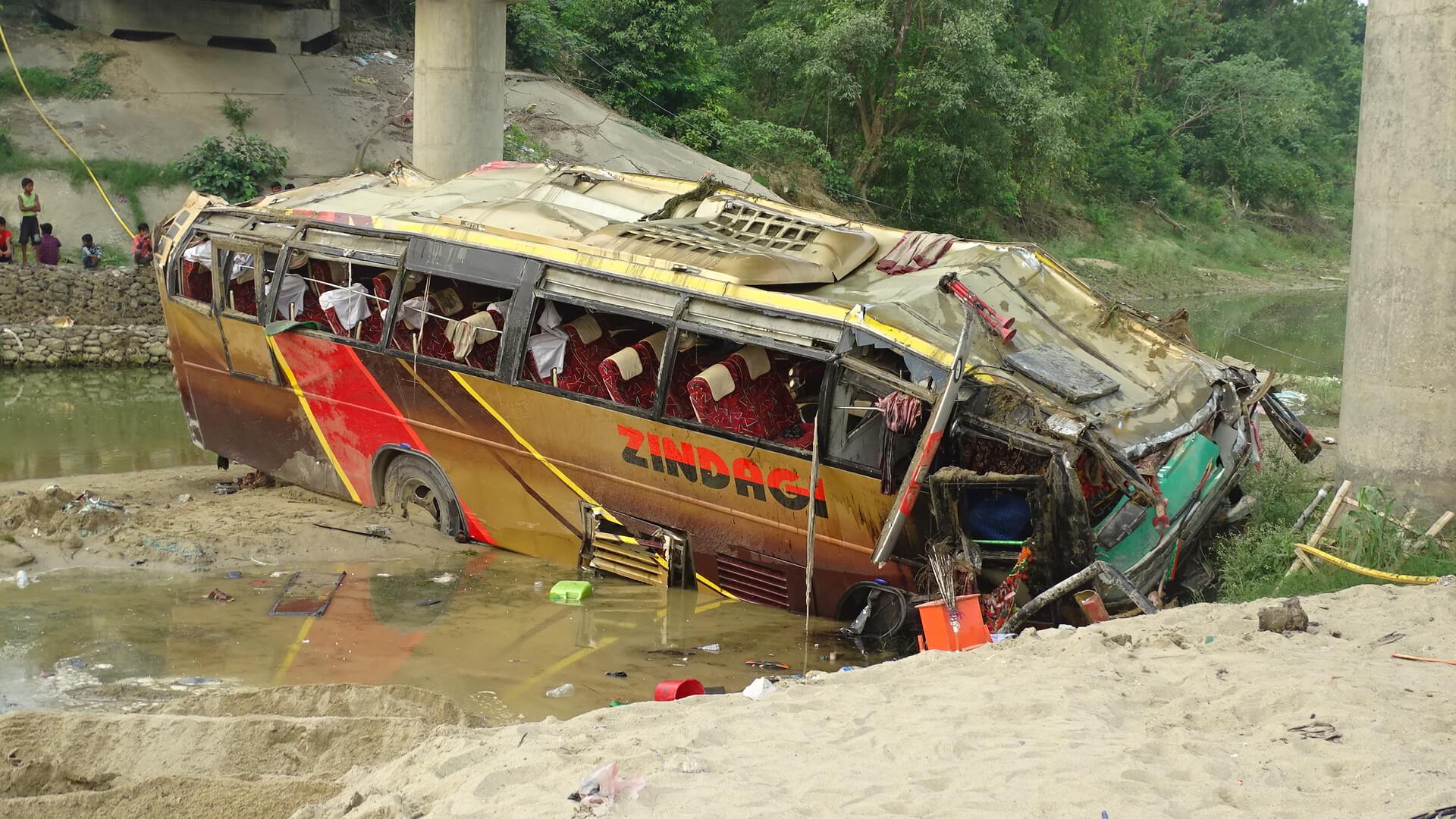 लु२ख ३८४१ नम्बरको बस रोहिणी पुलको रेलिङ्ग तोड्दै खोलामा खसेको थियो । घाेप्टाे अवस्थामा बस भेटिएपछि नेपाल प्रहरी, ट्राफिक प्रहरी, सशस्त्र प्रहरीलगायतको टोलीले उद्वार गर्दै यात्रुहरुलाई अस्पताल पठाएको छ । बसलाई सुल्टो पारेर राखिएकाे छ ।