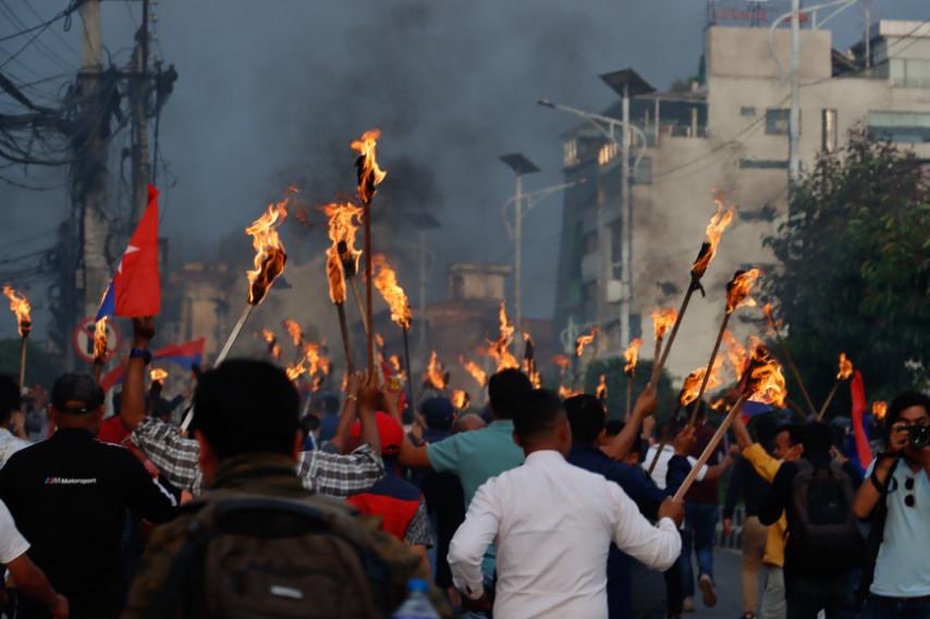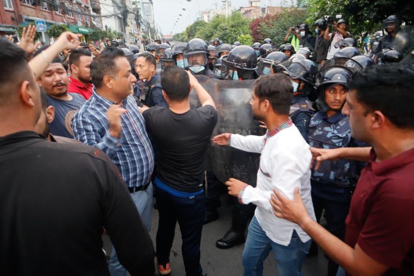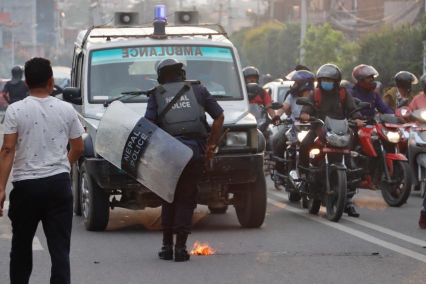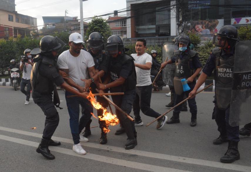 युवा संघले मसाल जुलुस निकालेर सडक अवरुद्ध गरेपछि प्रहरीले बल प्रयोग गरेको छ । प्रदर्शनकारीले सरकारी गाडीमा तोडफोड गरेका छन् भने प्रहरीसँगको झडपमा केही प्रदर्शनकारी घाइते भएका छन् ।