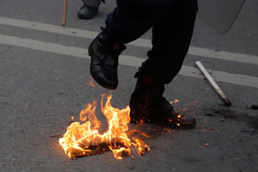 प्रहरी र प्रदर्शनकारीबीच मसाल खोसाखोस (फाेटाे फिचर)