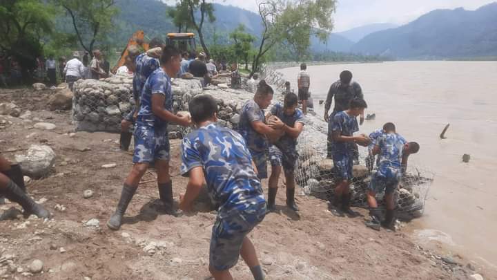 सप्तकोसीको सम्भावित कटान र डुबान रोक्न सशस्त्र प्रहरी बलले बाँध निर्माणलाई तिव्रता दिएको छ । नदीको धार गाउँतिर सोझिँदा बेलका नगरपालिकाका चार वडाका एक दर्जनभन्दा बढी बस्ती उच्च जोखिममा परेका छन् । नदी गत वर्षदेखि पश्चिमपट्टि सोझिदा तीव्र कटान हुन थालेको हो । कटानका कारण बेलका नगरपालिकाको वडा नम्बर २, ३, ८, ९ उच्च जोखिममा परेका छन् । बेलका नगरपालिका–८ डुम्रिबोटमा नदीले कटान तीव्र पारेपछि सशस्त्र प्रहरीले बाँध निर्माणलाई जोड दिएको हो ।