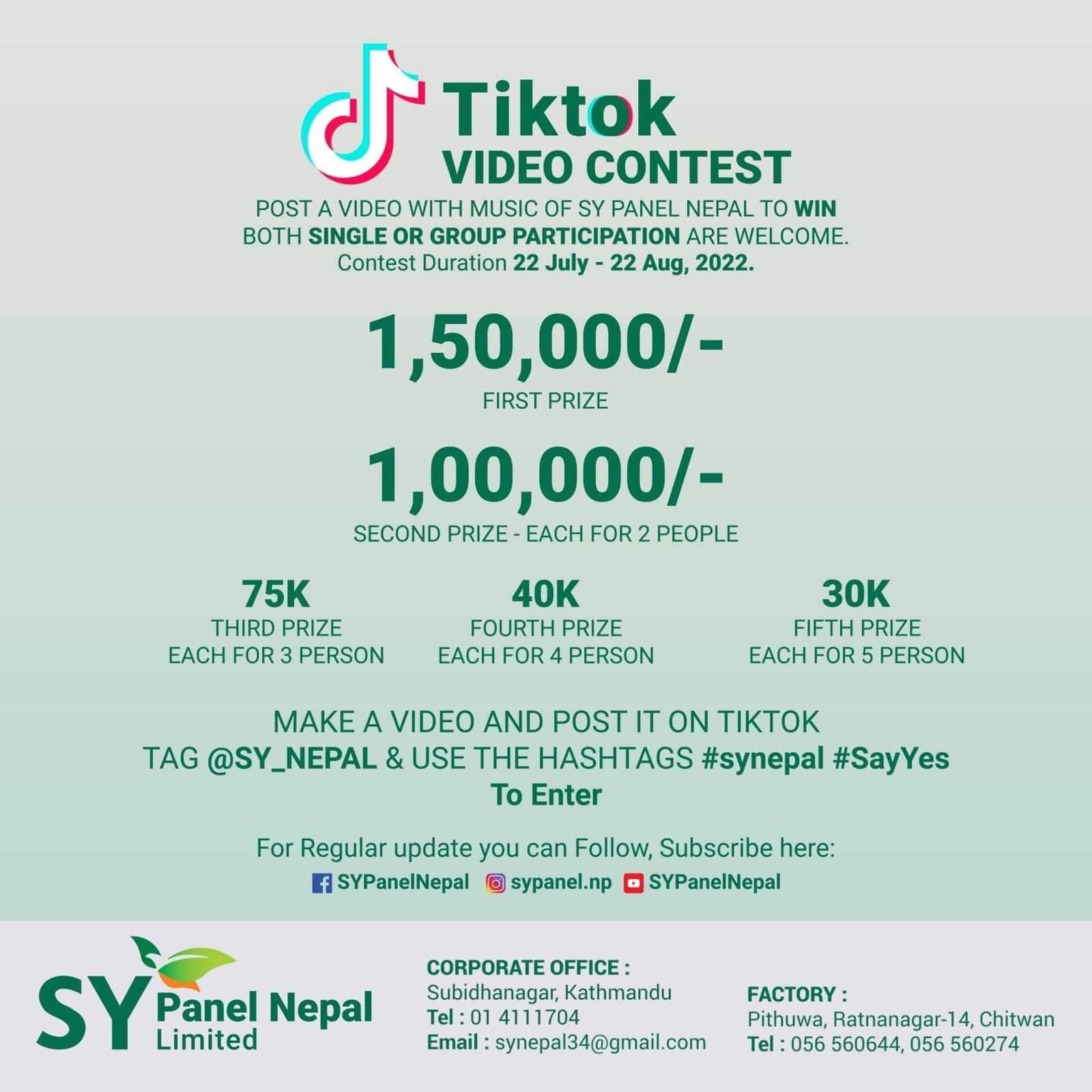 एसवाई प्यानलकाे टिकटक प्रतियोगितामा कसले कति पुरस्कार पाउँछन् ?