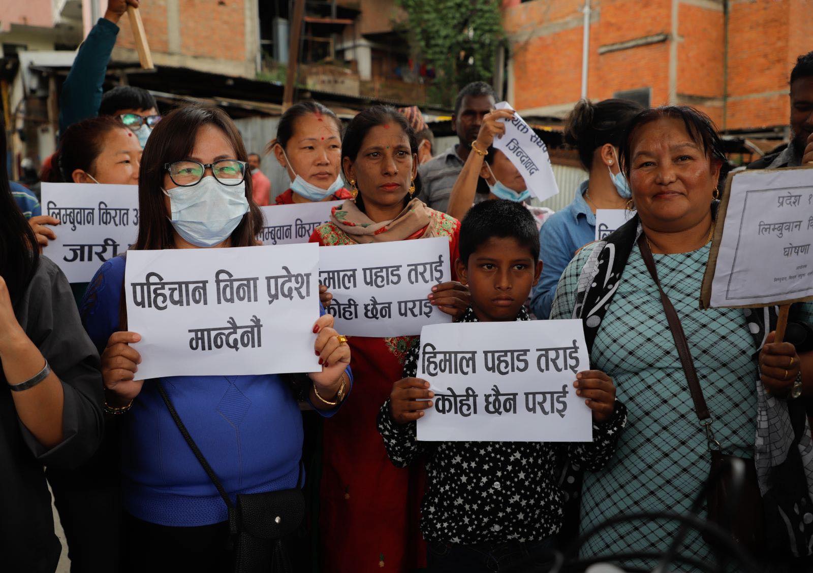 काठमाडाैं, ५ साउन । प्रदेश नम्बर १ लाई लिम्बूवान किरात नामाकरण गरियोस् भन्दै बिहीबार काठमाडौंको माइतीघर मण्डलामा प्रदर्शन गरिएकाे छ । प्रदेश १ को राजधानी विराटनगरमा लिम्बूवान किरात संघर्ष समितिले गरिरहेको आन्दोलनको समर्थन गर्न काठमाडौंमा दबाब प्रदर्शन गरिएको हो । लिम्बुवान किरात संघर्ष समितिले निकालेकाे र्रयालीमा लिम्बु सम्बद्ध विभिन्न संघ संस्थाका पदाधिकारी तथा सराेकारवालाहरूकाे सहभागिता रहेकाे थियाे । र्रयालीमा सहभागीहरूले ‘पहिचान विना प्रदेश मान्दैनाै, प्रदेश १ काे नाम लिम्बुवान किरात घाेषणा गर, विदा कटाैती फिर्ता गर, लिम्बुवान राज्य सुनिश्चित गर’ लगायतका नारा लेखिएका ब्यानर र प्लेकार्ड प्रदर्शन गरेका थिए । थप फाेटाेहरूः