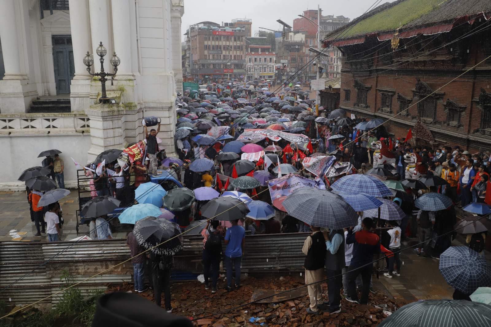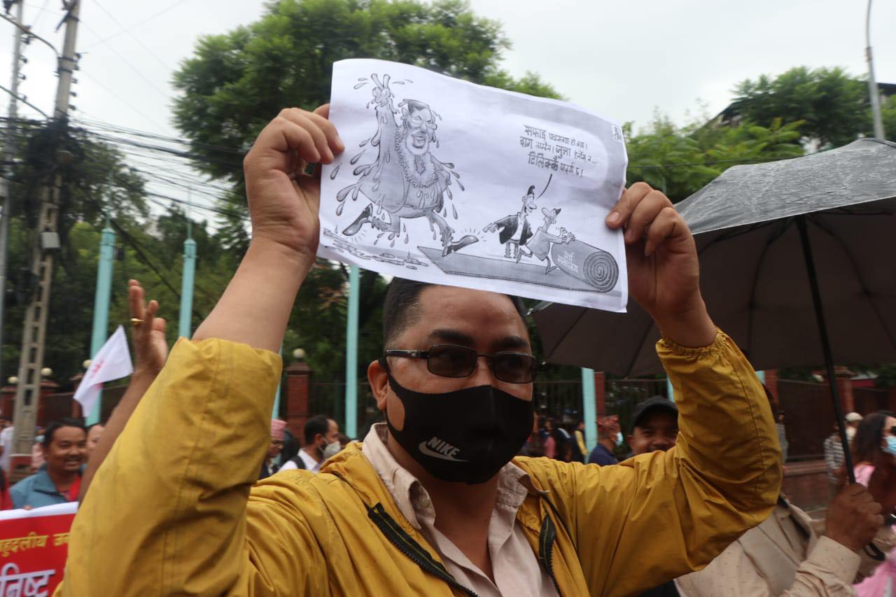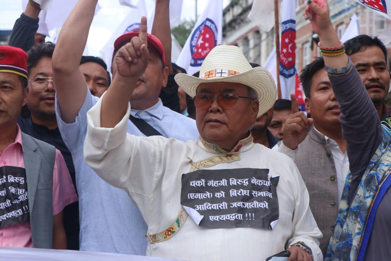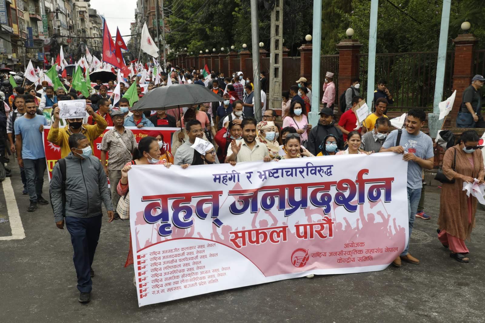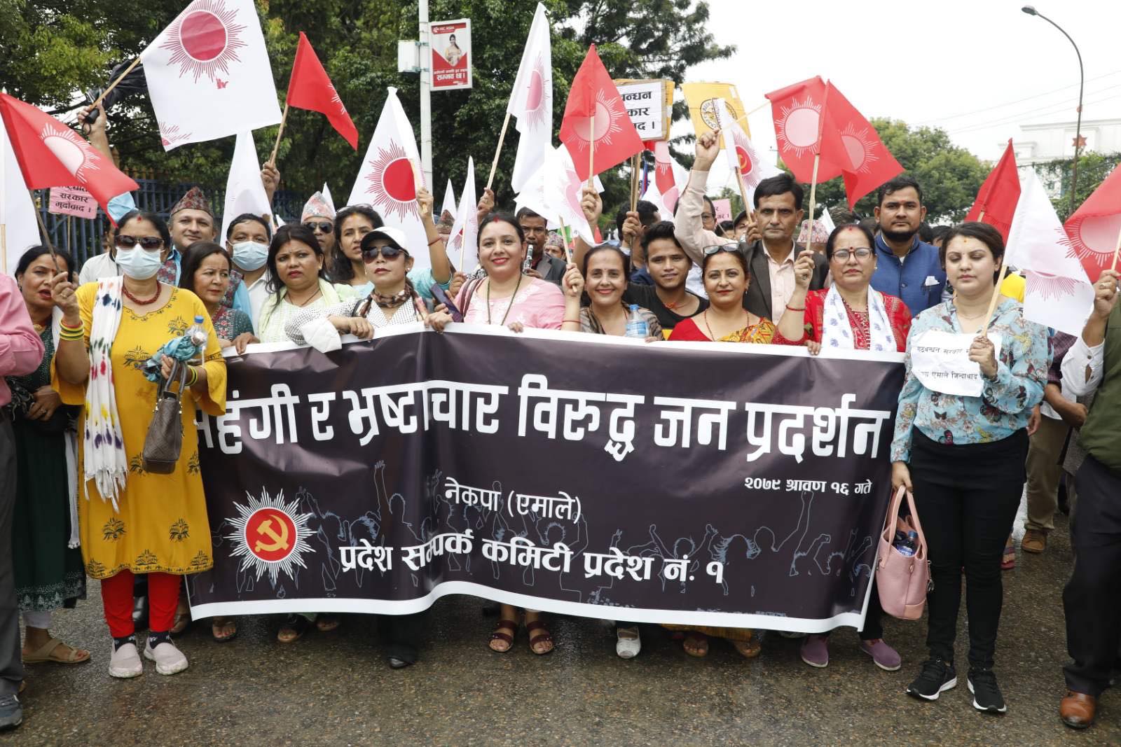 काठमाडौं, १६ साउन । नेकपा एमालेले महंगी र भ्रष्टाचार विरूद्ध साेमबार राजधानीमा बृहद् विराेध प्रदर्शन गरेकाे छ । बसन्तपुरबाट सुरू भएकाे बिराेध प्रदर्शनमा बाेल्दै एमाले महासचिव शंकर पोखरेलले देशहितविपरीत नागरिकता विधेकय पास गरिएको आरोप लगाएका छन् ।