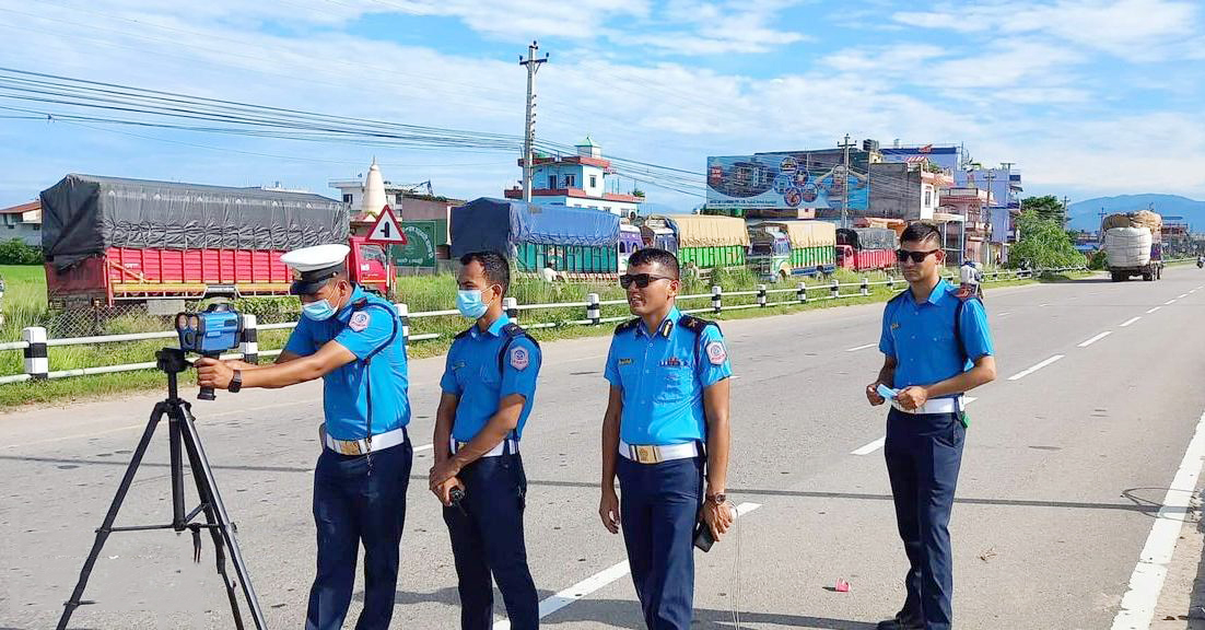 राजमार्गमा ‘राडर गन’सहित ट्राफिक प्रहरी सडकमा