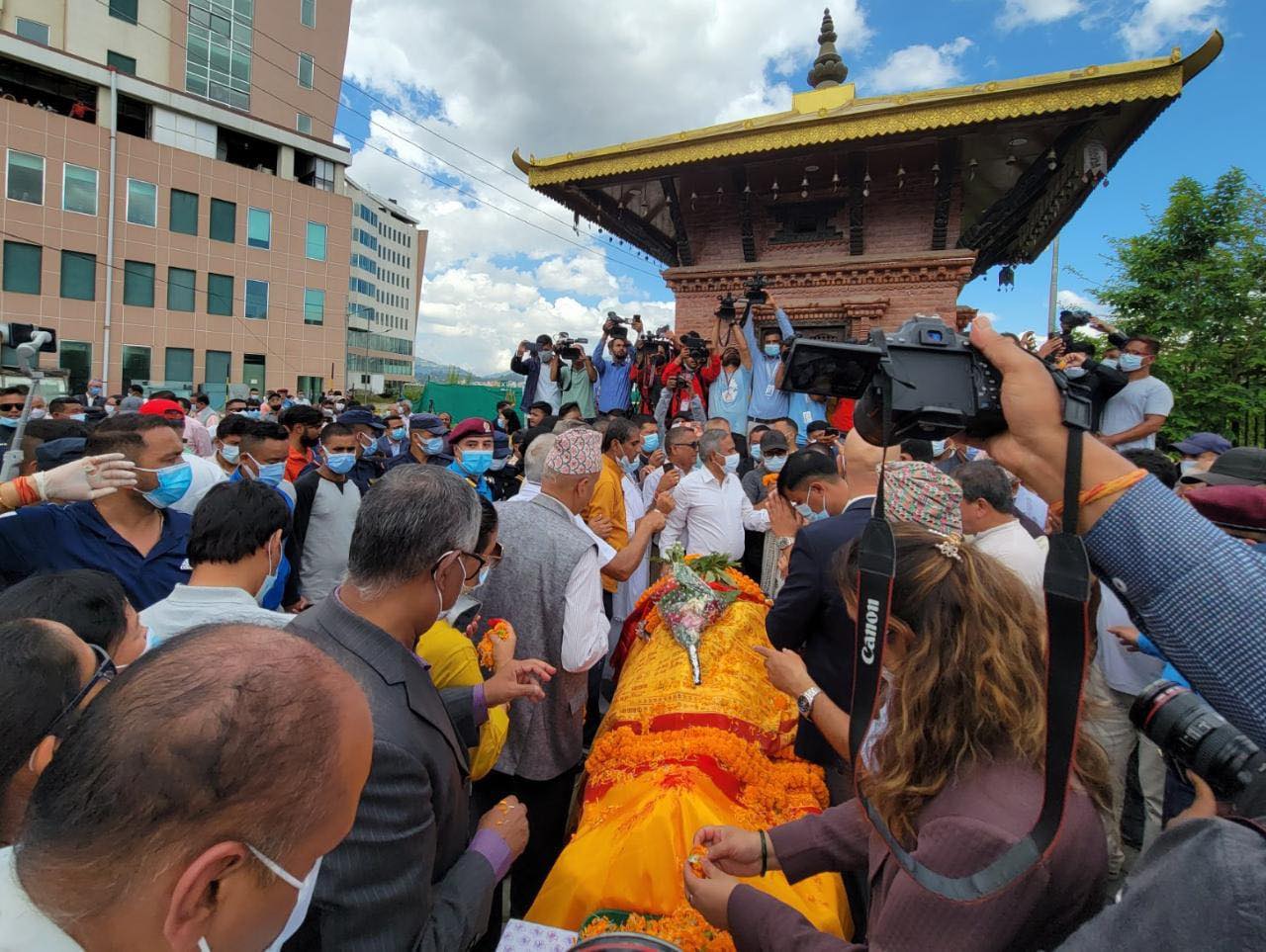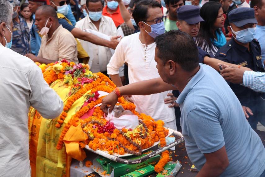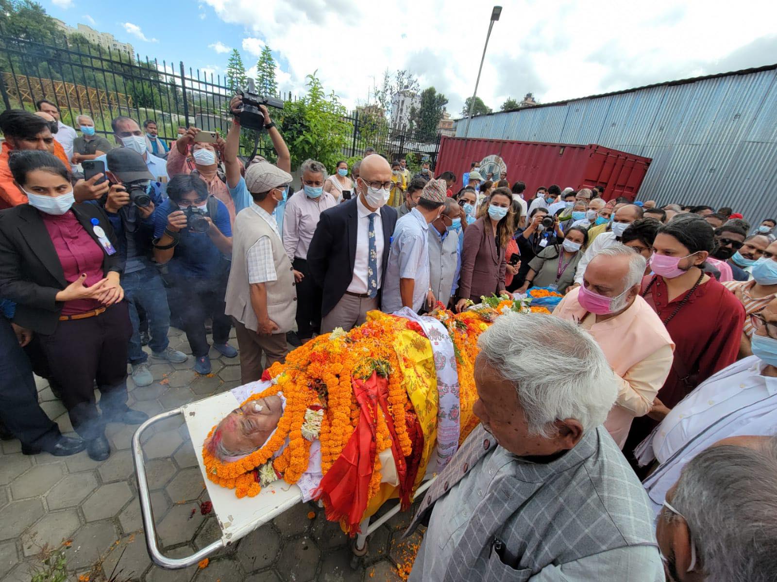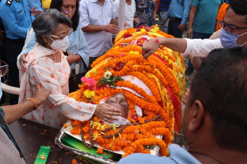 कांग्रेस सभापति तथा प्रधानमन्त्री शेरबहादुर देउवा, माओवादी अध्यक्ष तथा पूर्वप्रधानमन्त्री पुष्पकमल दाहाल प्रचण्ड, नेपाल समाजवादी अध्यक्ष तथा पूर्वप्रधानमन्त्री डा. बाबुराम भट्टराईले पार्थीव शरीरमा पुष्पगुच्छा चढाएर श्रद्धाञ्जली व्यक्त गरेका छन् ।