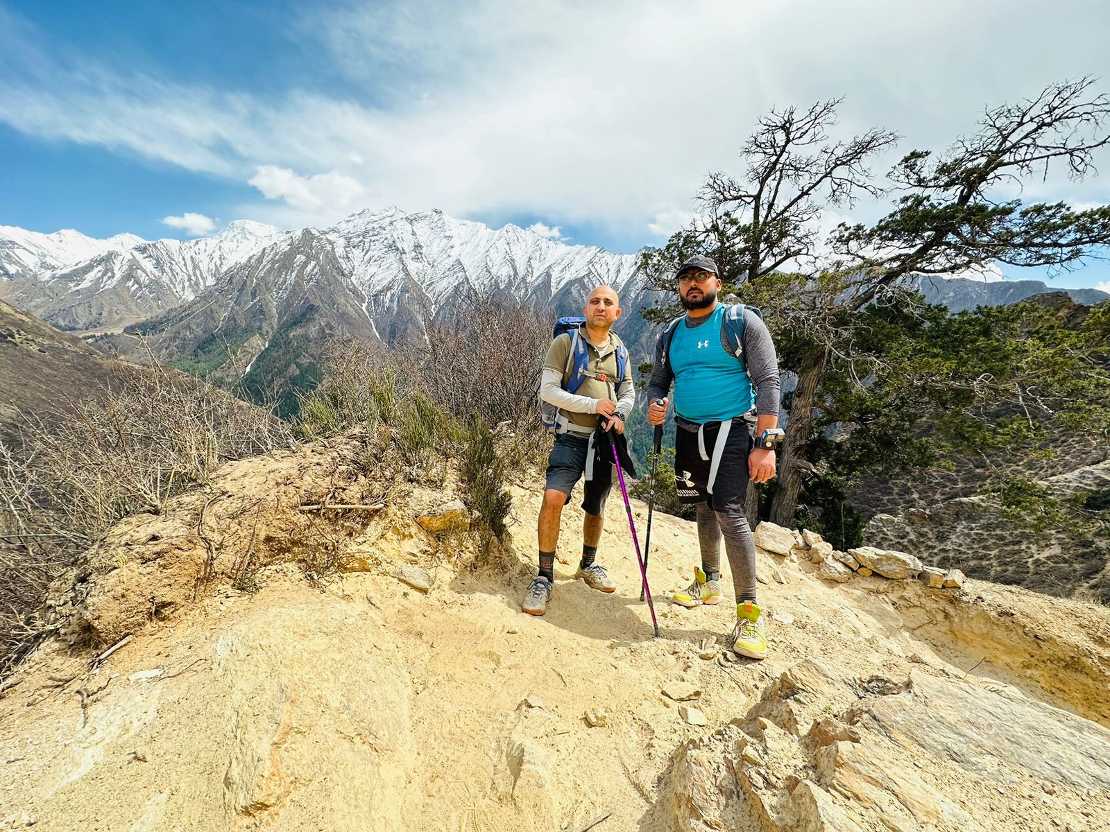 पहिलो उकालो हामीले ४५ मिनेटमा पूरा गर्याैं । त्यसपछि केहिबेर विश्राम गरेर पुनः उकालो लम्कियाैं । दोश्रो उकालो डेढ किलाे मिटर भएपनि उक्लिनै तीन घण्टा लाग्यो । धूलाैटे बालुवामा हाम्रा पाइतला कहाँ पर्याे थाहै नहुने । त्यस्तो उकालो सायद हामीले जीवनमा पहिलाेपल्ट हिडेका थियाैं ।सधैं हिडिँरहने स्थानीयलाई पनि अढाइ घन्टा लाग्दाे रहेछ ।