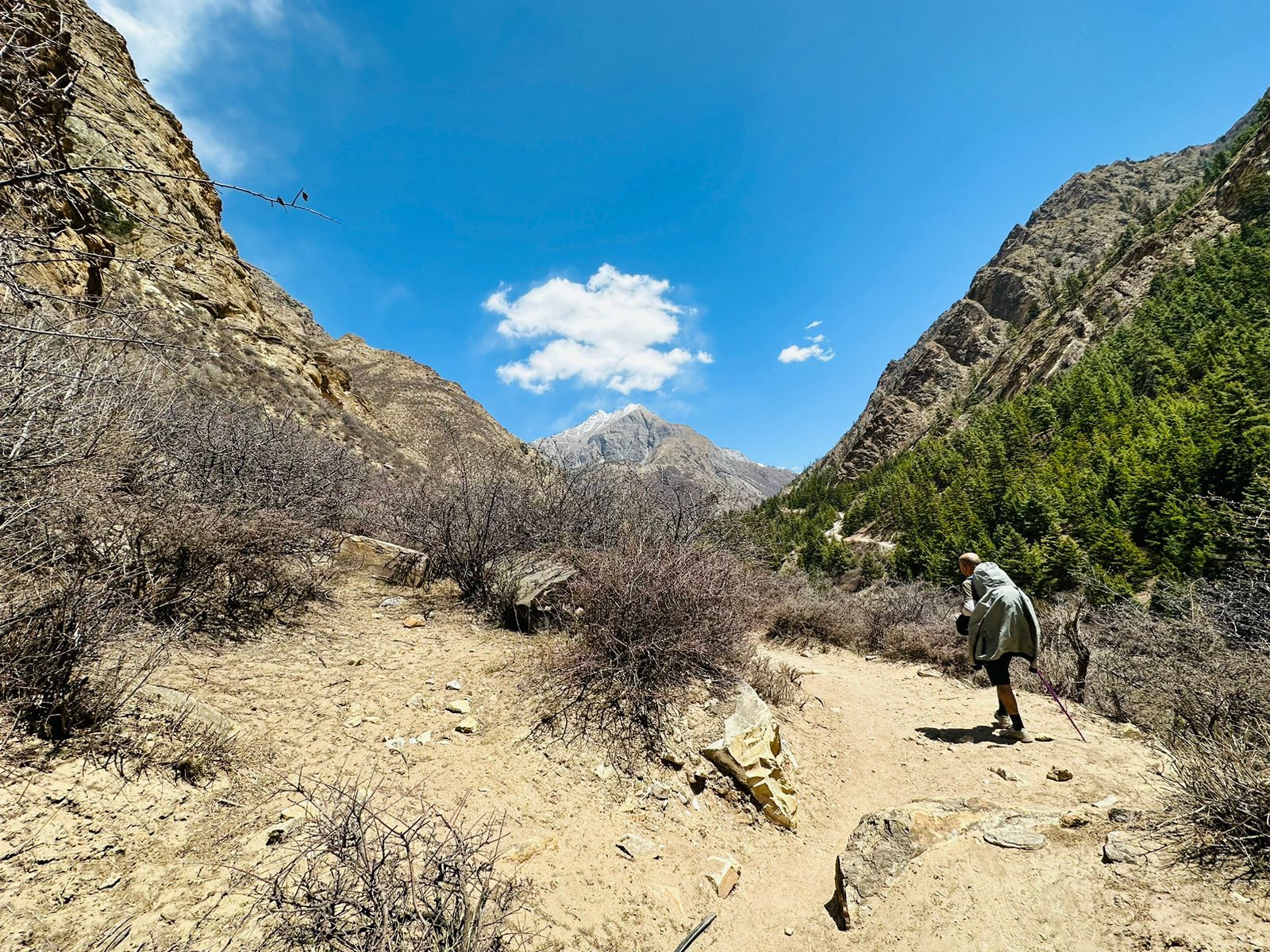 केहिबेर तेर्सो बाटो हिँडेपछि हिजो हिँडेको ओरालो बाटो आजको उकालो भयाे । उकालाे हिँड्न जति गाह्राे हुन्छ ओरालाे झर्न झनै गाह्राे हुँदाेरहेछ । त्यसमाथि साँघुराे, धुलाैटे भीरकाे बाटाे ।