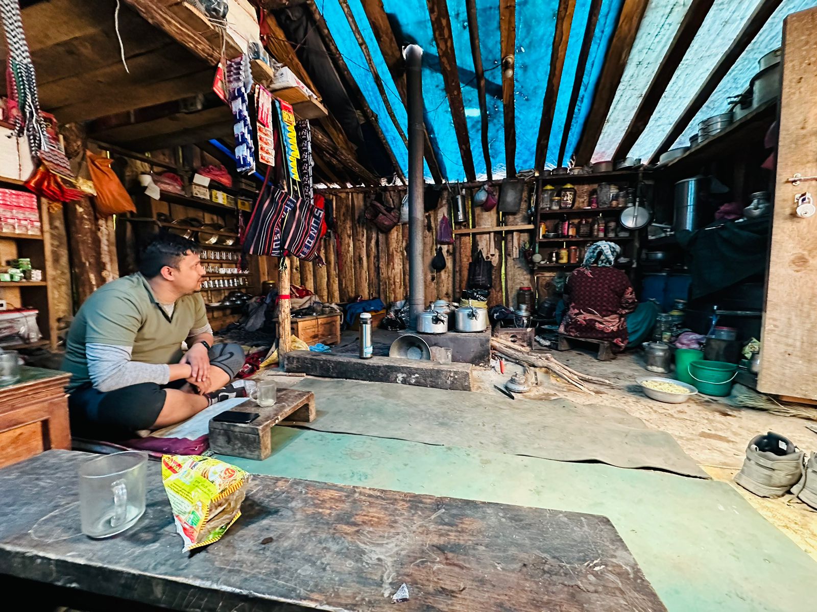 दायाँ बायाँ नहेरी नबुझि पहिला जुन होटल देखियो त्यसैमा पस्याैं । दिनभर बाेकेकाे झाेला विसाउँदा अर्कै आनन्दानुभुति भाे । एकछिन आराम गरेपछि हातमुख धोएर कोरियन चुलोको वरिपरि खुट्टा सेकाउँदै खाजा खाँदै खाना अर्डर गरियो । मैले दुई चम्चा लोकल मह मागेर खाँए । अर्गानीक स्वाद सारै मिठो ! किनेर लान साेधें । हाेटल साहुजीले फर्केर आउँदा व्यवस्था गरिदिने भए । रातकाे खाना खाएर विहान ५ बजेनै उठ्ने शर्तमा ओछ्यानमा पसियाे ।