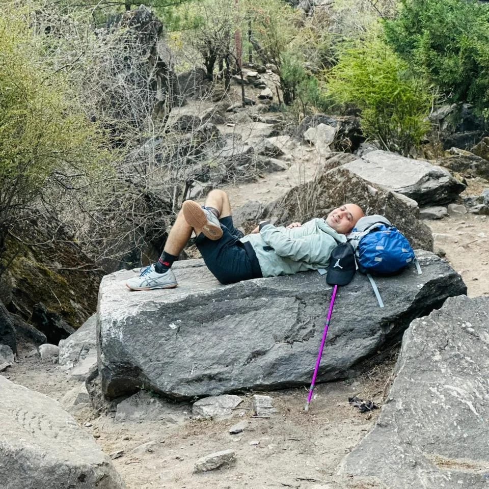 अब भने हाम्रो अग्नि परीक्षा सुरु हुनेवाला थियो । सबै भन्दा कठिन तीन वटा उकालो काट्नु पर्ने थियो । घाम चर्को लाग्न थालिसकेको थियो । नाङ्गो डाँडा भएकाले उकालाे नसकुन्जेल घामबाट राम्रै सेकिने । उकालोमा पानी पनि नपाइने भएकोले झनै सकस । चर्काे घाँम, उकालाे बाटाे शरीरमा पानीकाे मात्रा धेरै खपत हुने भएकाले पर्याप्त पानी बाेकेर नहिँडे सारै गारो भाे ।
