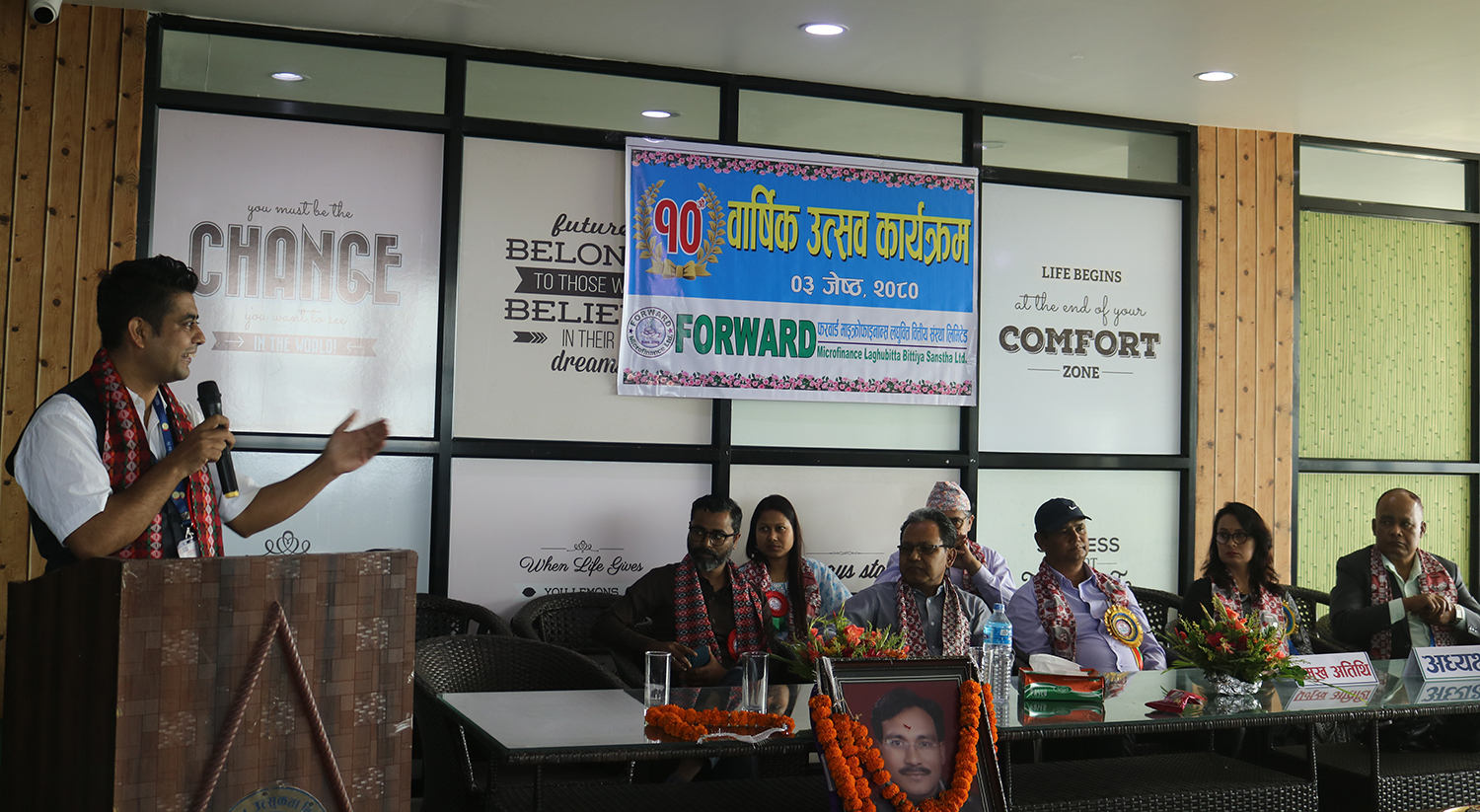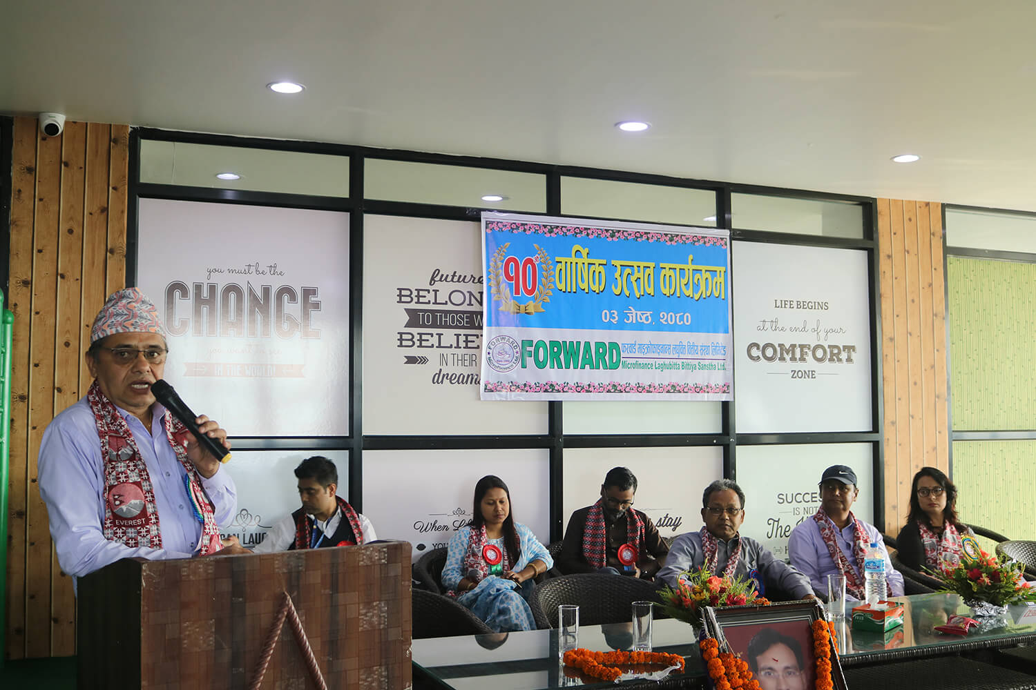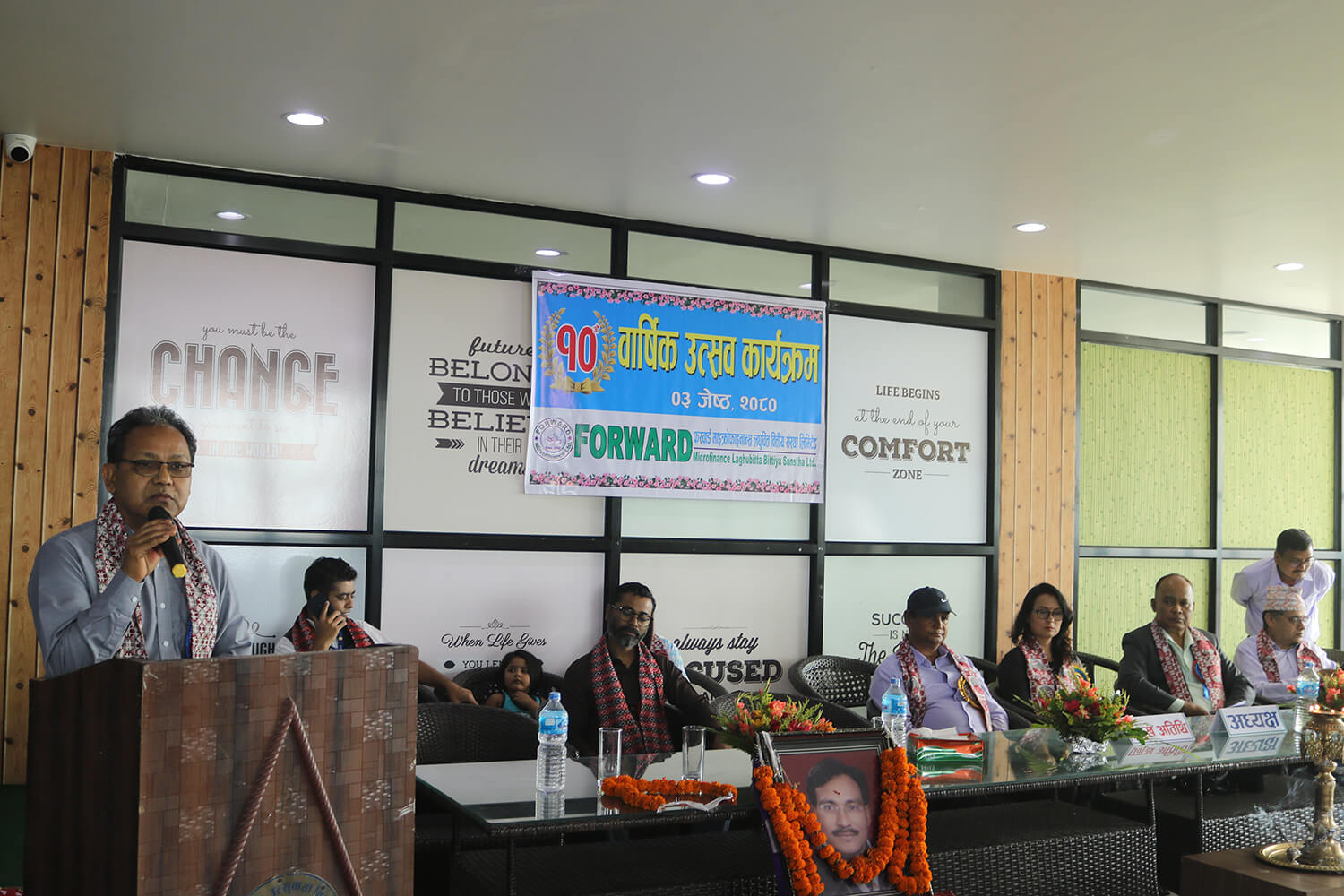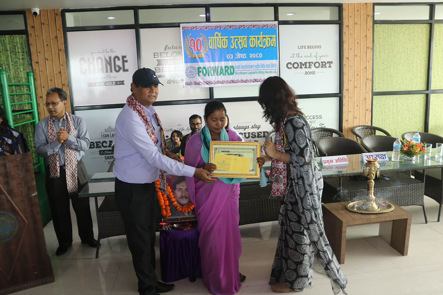 ग्रामीण महिला उत्सुकता बिकास मञ्च (फरवार्ड) बाट प्रतिनिधित्व गरेकी सञ्चालक सदस्य राज कुमारी चौधरीको अध्यक्षतामा आयोजित कार्यक्रममा संस्थाका प्रमुख कार्यकारी अधिकृत राम दयाल राजबंशीले स्वागत मन्तब्य राख्दै ग्रामीण महिला उत्सुकता बिकास मञ्च स्थापनाको छोटो समयमा बचत तथा ऋण कार्यक्रम मार्फत समाजमा छरिएर रहेको पुँजीलाई एकत्रित गर्दै वित्तीय साक्षरता फैलाएको बताए ।