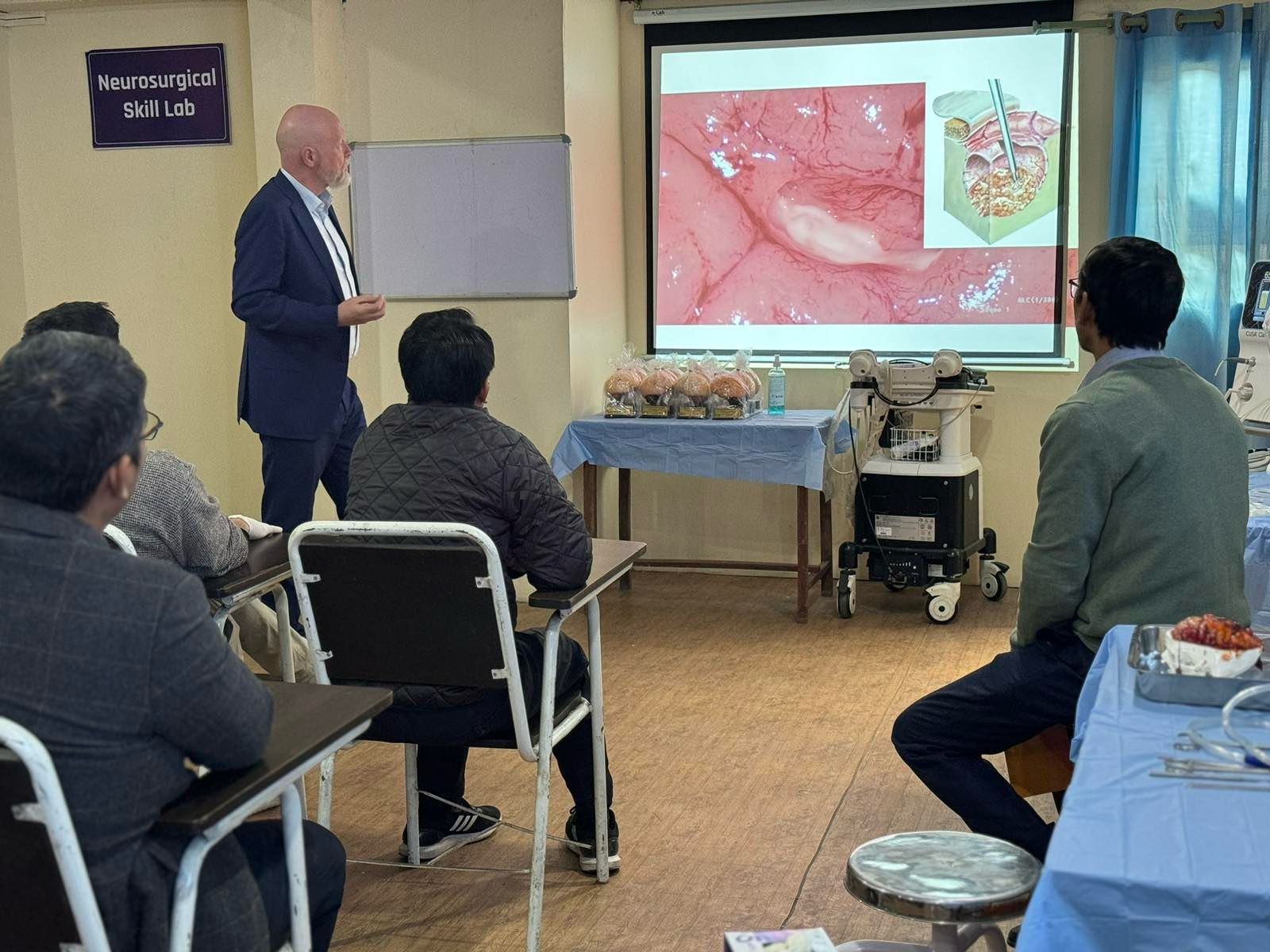 यस कार्यशालाको मुख्य विशेषता भनेको ब्रेन ट्युमरको शल्यक्रियालाई अझ प्रभावकारी बनाउनु हो । 5 ALA भन्ने फ्लोरोसेंट डाई, ट्यूमर कोशिकाहरूद्वारा लिइन्छ र यसलाई शल्यक्रियाको समयमा पहिचान गर्न सकिन्छ । जुन कहिलेकाहीँ माइक्रोस्कोप मुनि पनि सामान्य बत्तीहरूमा गाह्रो हुन्छ । अनुसन्धानले देखाएको छ कि यो मोडालिटी प्रयोग गरेर बाँच्ने दर सुधार्न सकिन्छ ।