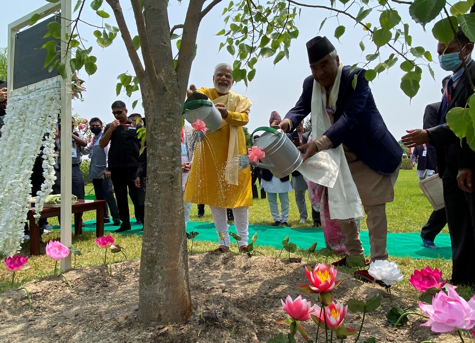 सन् २०१४ मा बोधी वृक्षकाे बिरुवा पठाएका मोदीले अहिले विकसित भएर वृक्ष बनेको छ । उनले नेपाल रामविना पनि अधुरो हुने बताउँदै भारतमा बन्दै गरेको राम मन्दिरका कारण नेपाली हर्षित भएकाे विश्वास व्यक्त गरे ।