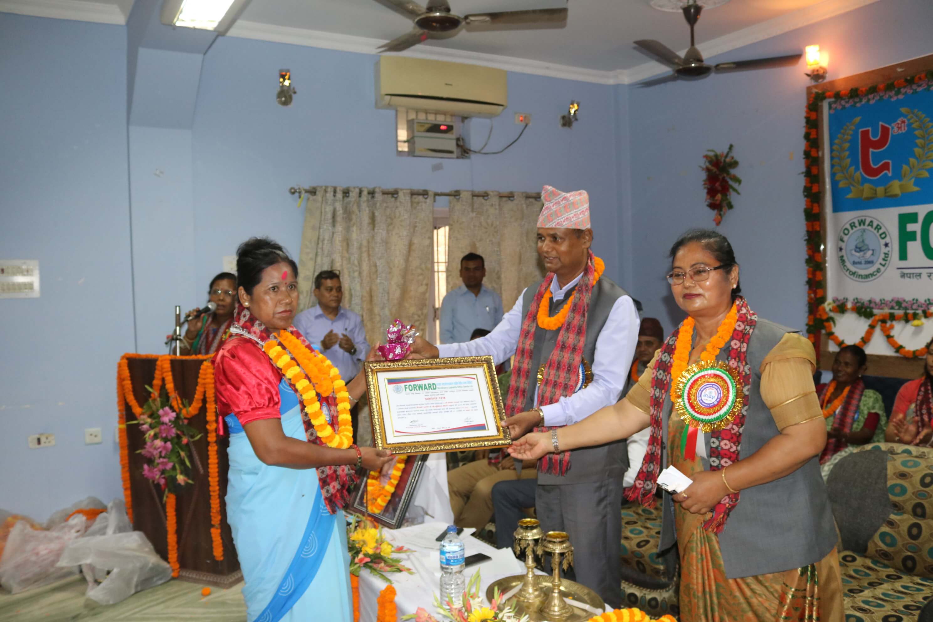 फरवार्डको नवौं वार्षिकोत्सवको अवसरमा महिला स्वास्थ्यकर्मी र सञ्चारकर्मीलाई सम्मान समेत गरिएको थियो । संस्थाको सामाजिक उत्तरदायित्व अन्तरगत गढी गाउँपालिकाकी महिला स्वास्थ्य स्वयं सेविका सुमित्रा चौधरी तथा सञ्चारकर्मी केशब सापकोटालाई सम्मान गरिएको थियो ।