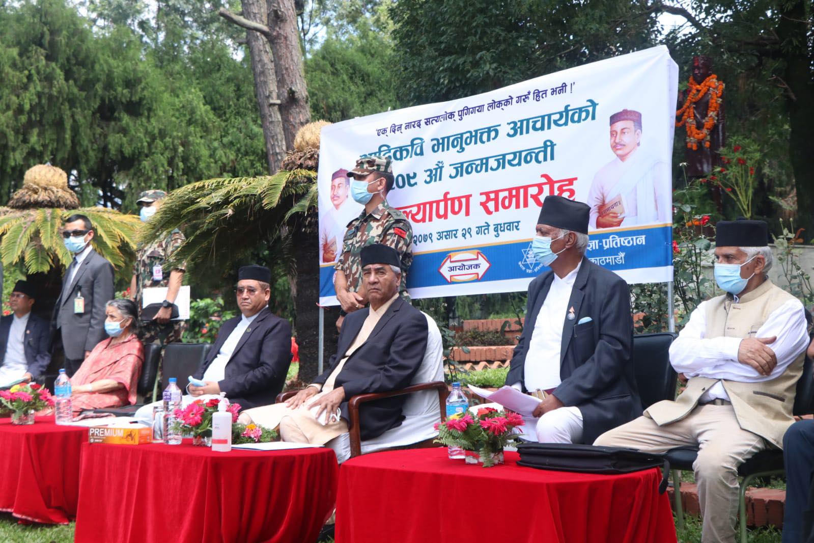 काठमाडौंमा आयोजित एक कार्यक्रमका बिचमा नेपाली लोक लयमा आधारित नेपाली रामायणका रचनाकार आदिकवि भानुभक्तको शालिकमा प्रधानमन्त्री देउवाले माल्यार्पण गरेका हुन् । १८७१ असार २९ गते आजैका दिन पिता धनञ्जय आचार्य र माता धर्मावतीदेवी कोखबाट उनको जन्म भएको थियो ।