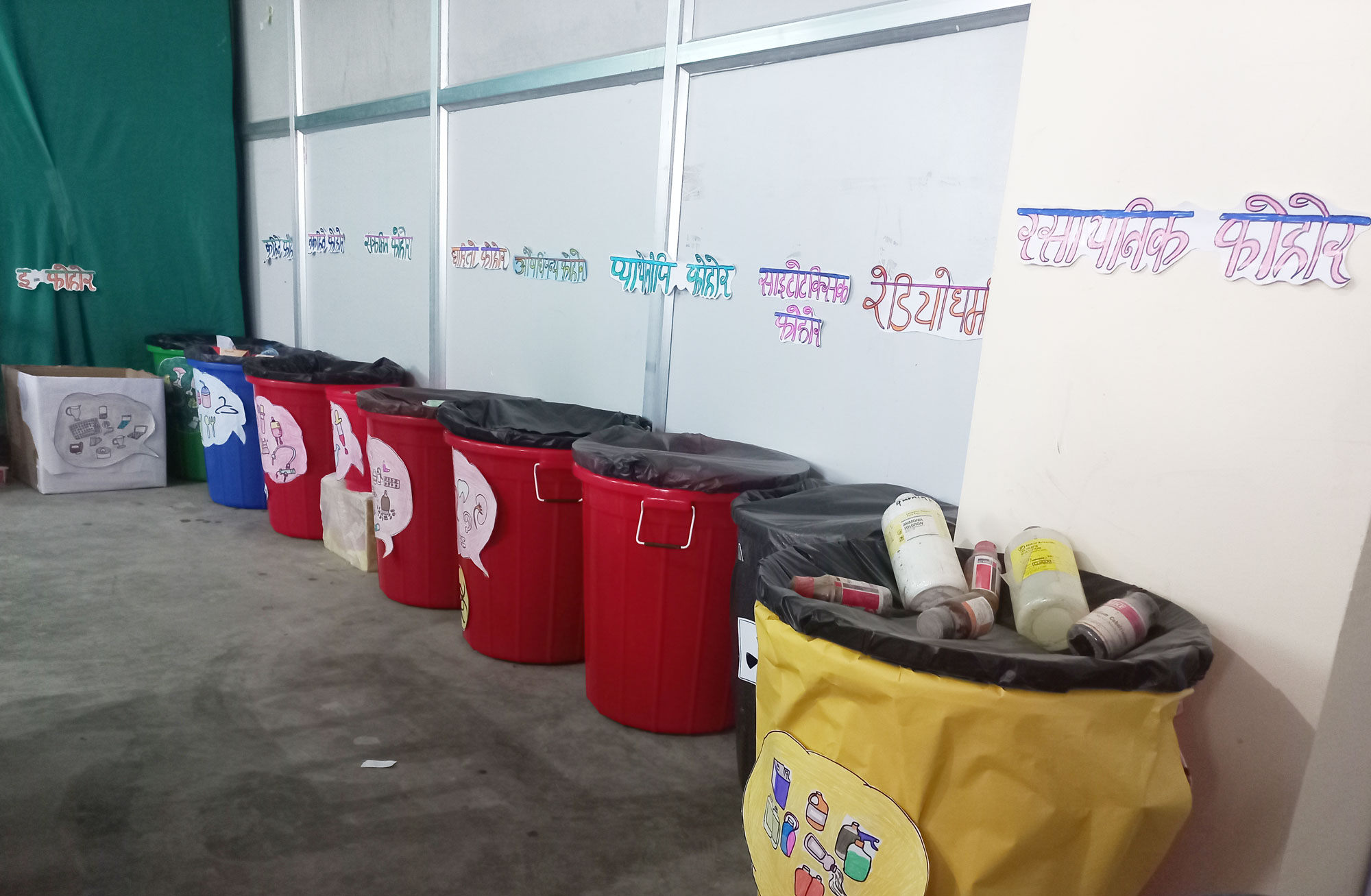 कुहिने फोहोर, नकुहिने फोहोर, संक्रमित फोहोर, धारिलो फोहोर, औषधिजन्य फोहोर, प्याथोलोजी फोहोर, साइटोटक्सिक फोहोर, रेडियोधर्मी फोहोर र रसायनिक फोहोरको बेग्ला बेग्लै डस्विन प्रयोग गरेर फोहोर व्यवस्थापनको अभ्यास पनि गरिएको छ ।