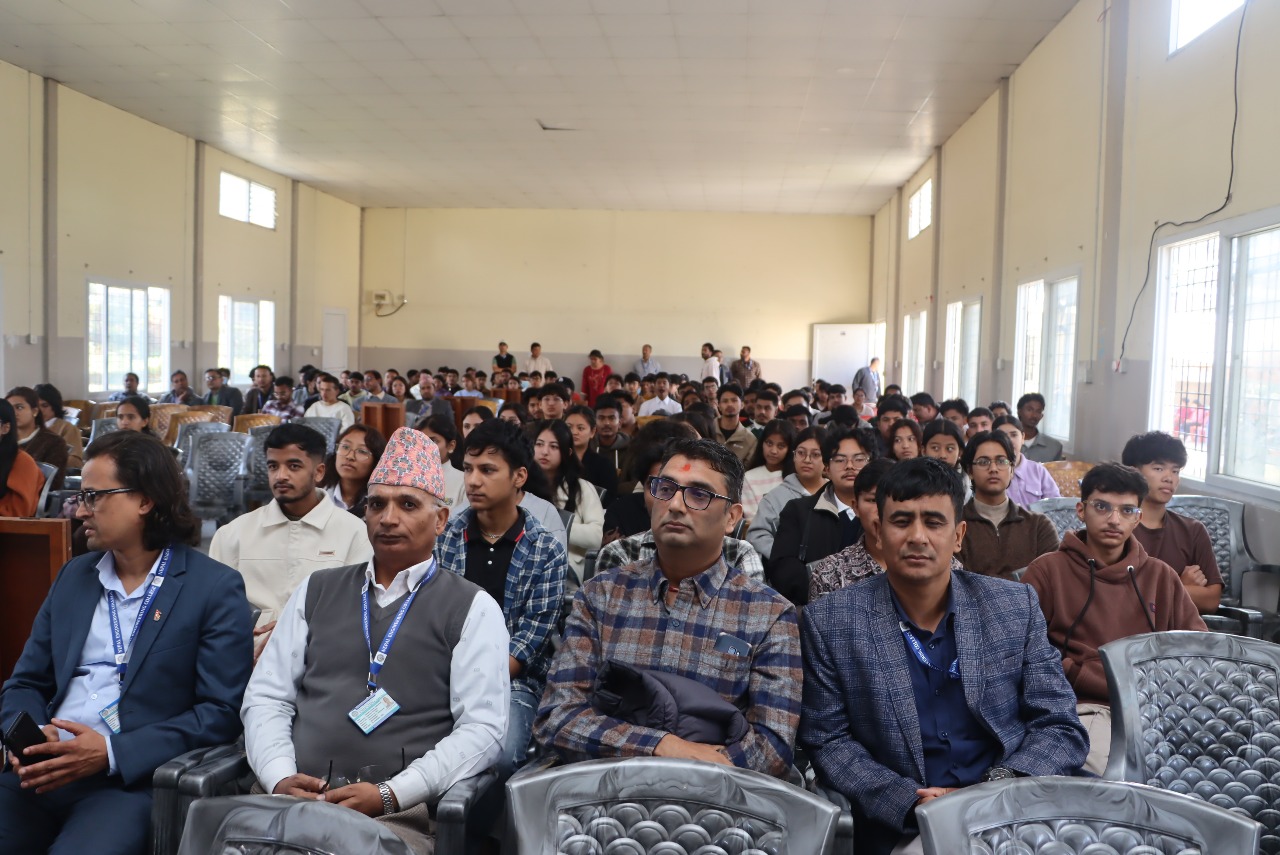 कार्यक्रममा बोल्दै कलेजका सहायक प्राचार्य मोहनध्वज केसीले इन्जिनियरिङ र आर्किटेक्चरको पढाई भनेको कला भएको उल्लेख गर्नु भयो । इन्जिनियरिङ र आर्किटेक्चर संसारभर प्रयोग हुने ज्ञान भएको भन्दै सहायक प्राचार्य केसीले कलेजले विद्यार्थीको सिकाईका लागि सैद्धान्तिक र व्यवहारिक दुवै ज्ञान दिने बताउनु भयो । ‘इन्जिनियरिङ र आर्किटेक्चर भनेको सैद्धान्तिक ज्ञान मात्रहैन यो ब्यवहारिक कला पनि हो । यो संसारभर चल्छ ।’ नेपालमा हालसम्म ७७ हजार इन्जिनियरहरु दर्ता भएको उल्लेख गर्दै उहाँले दक्षिण अमेरिकाको तुलनामा नेपालको विकास गर्नका लागि साँढे ६ लाख इन्जिनियरहरु चाहिने बताउनु भयो । विद्यार्थीलाई अनुशासनमा रहेर आफ्नो करियर प्रति ध्यान दिन अनुरोध गर्दै उहाँले विद्यार्थीको सिकाईका लागि कलेज ब्यवस्थापन, फ्याकल्टी सदैव सकारात्मक रहने प्रतिबद्धता जनाउनु भयो ।